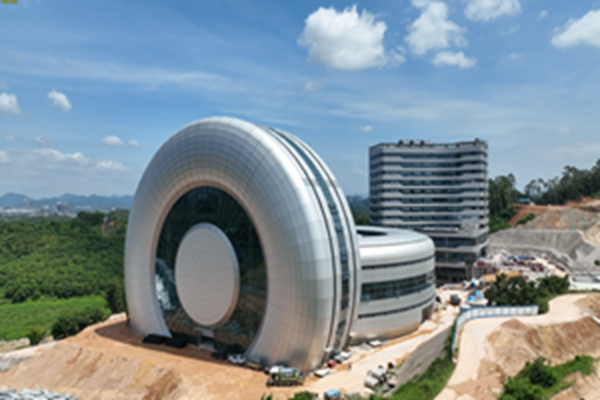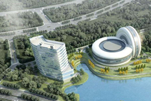 大科学装置中心造型为两个巨大的轮胎,“竖轮胎”高52米,直径90米;前有半个“小轮胎”是航空轮胎展示中心;“横轮胎”高23.45米,后面是科技中心,与之配套共同组成航空轮胎大科学中心。